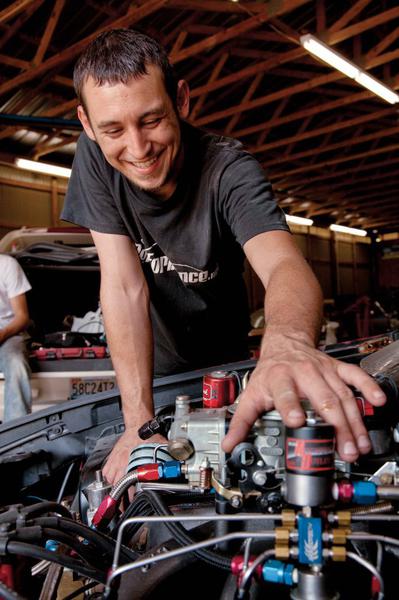 The Kellymoss Racing crew is busy preparing the Racing for Children’s Porsche for the final race of the day — the Porsche Sprint Challenge North America, GT3. The car’s driver, Efrin Castro, is checking out the green and white racing machine, decked out with the Children’s of Alabama logo and, more importantly, handprints from children undergoing treatment for cancer and blood disorders.